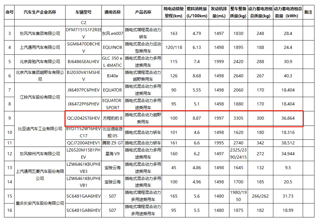 動力方面當然是招牌的DMO越野平臺,搭載2.0T插電式混合動力系統(tǒng),發(fā)動機最大功率為200kW,匹配最大功率200kW+300kW前后雙電機,組成電四驅(qū)系統(tǒng)。與之匹配的是36.864kWh磷酸鐵鋰電池組,工信部顯示純電續(xù)航里程為100km,虧電油耗8.87L/100km。