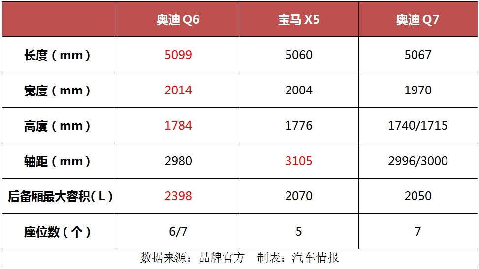 正如各個級別車型都在“越造越大”一樣,雖說寶馬X5、奧迪Q7的車長超5m,車寬在2m左右,但奧迪Q6全面領(lǐng)先的三圍數(shù)據(jù)、最大容積2398L的后備廂容積,在滿足乘坐空間之余,還能應(yīng)對自駕露營、沖浪垂釣等場景的裝載需求,具有較強的實用性。