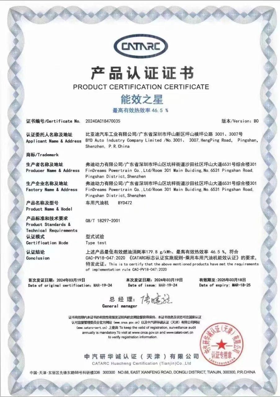 而第五代DM發動機在擁有夸張的46.06%熱效率之外,比亞迪還有熱效率高達46.5%的發動機被曝光了產品認證證書,讓幾位試圖挑釁的對手敗下陣來,以至于比亞迪品牌及公關處總經理李云飛會表示:“像這種沒量產的,更高熱效率的,我們還有大把,只是不想說而已!”