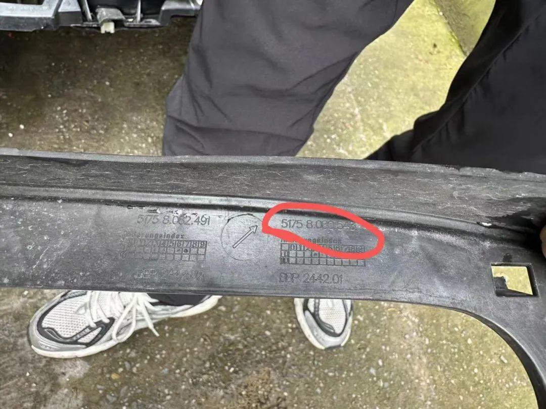 這里有幾個辦法,首先最簡單的就是直接在損壞的零件上面找配件號,比如下圖的零件,我只知道TA是一個前杠下方的塑料條,這個是無法和配件商描述的,但是因為我看到了上面的編號:51758080543,所以我可以直接和配件商報這個配件號,從而讓他幫我找貨。而且這個方法非常精準,車架號+配件號具有唯一性,不用擔心貨發出來安裝不上的問題。