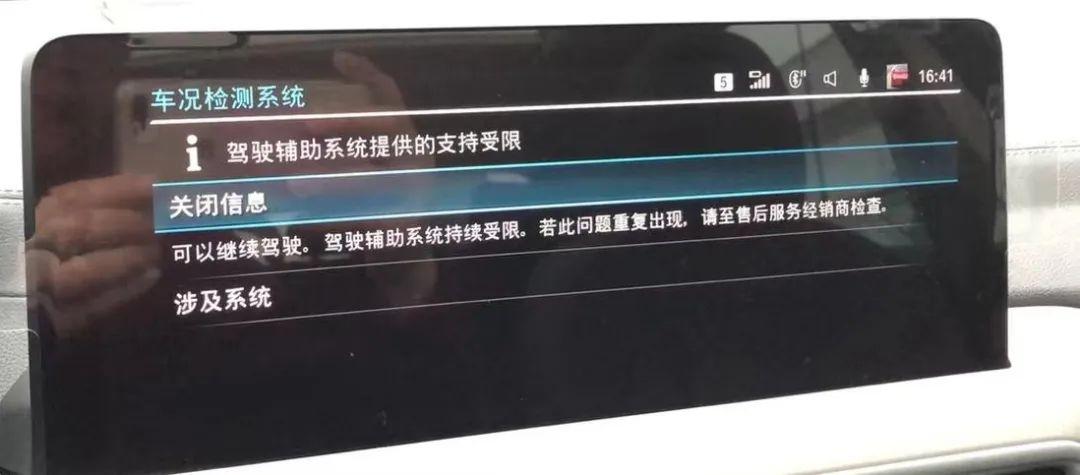 前風擋已分不清是雨水還是濺起的積水,突然中控屏幕跳出“駕駛輔助系統提供的支持受限”的提示。本人只能緊握方向盤穩住行車路線,并逐步減速,好在最終有驚無險挺過了這場大暴雨,駕駛輔助系統恢復正常。事后經了解,發現很多車友也遇到過此類情況,基本都是由于暴雨導致傳感器感知受限,造成系統退出。