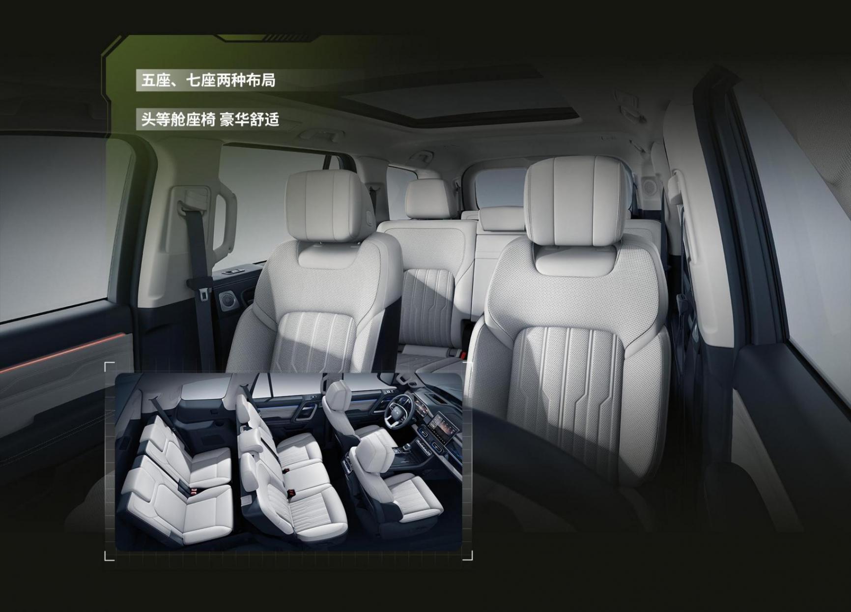 新車不僅帶有電動踏板,備胎后掛的設(shè)計同樣很有顏值感。此外,中高配置車型上還出現(xiàn)了20英寸的高亮輪轂設(shè)計,我認(rèn)為確實要比同級別的競爭對手霸氣不少。車身數(shù)據(jù)部分,北京BJ60的長寬高分別為5040/1955/1925mm,軸距是2820mm。廠家也特別聽勸,除了五座設(shè)計,還擁有七座設(shè)計,這種座椅設(shè)計很貼當(dāng)下潮流。