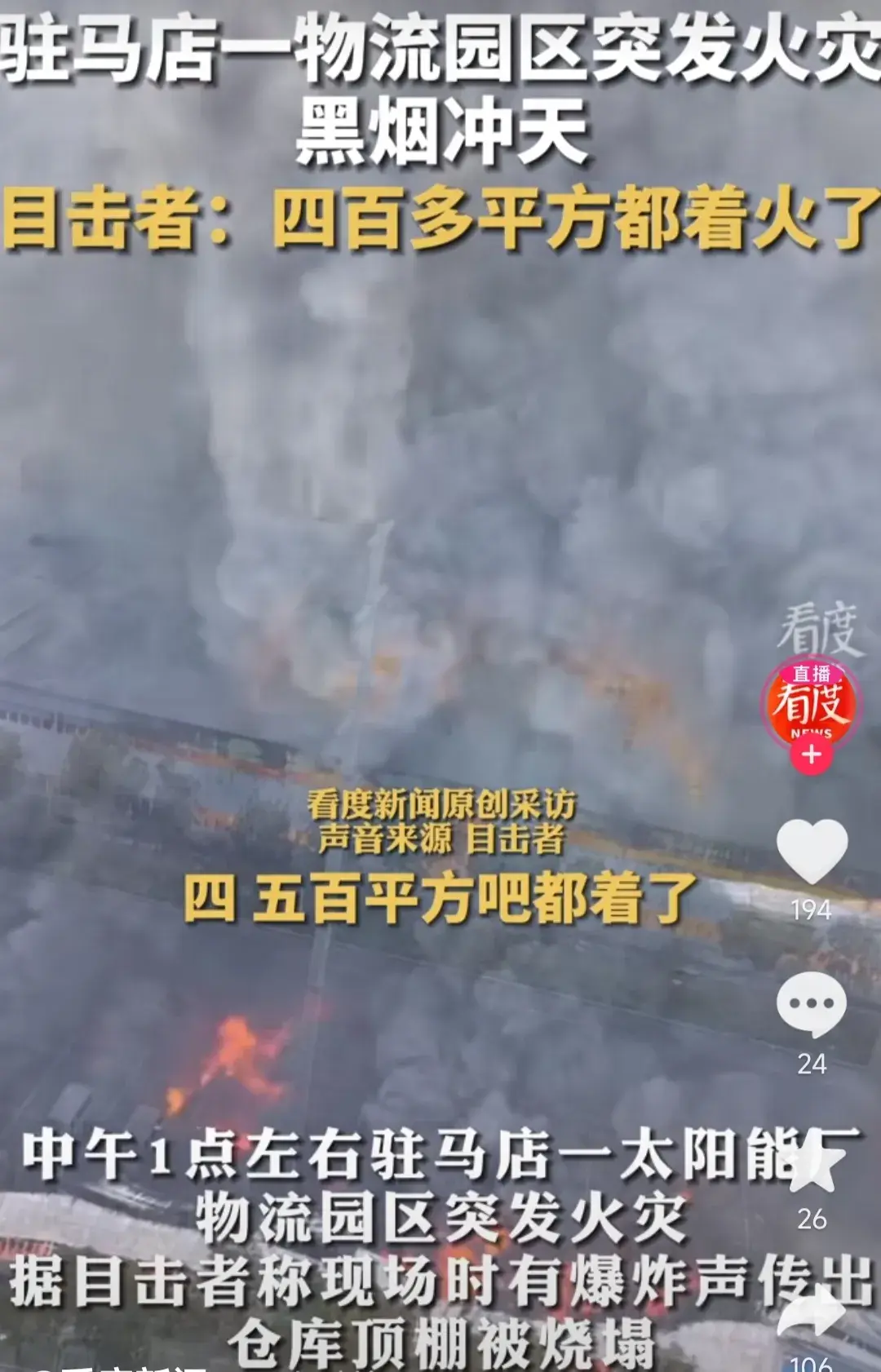 1月28日,網(wǎng)傳河南駐馬店一公司倉庫起火。據(jù)網(wǎng)絡(luò)視頻顯示,現(xiàn)場火勢洶洶,頂棚被燒塌黑煙沖天。15時左右,青蜂俠聯(lián)系到駐馬店市消防大隊,一工作人員表示火勢還未撲滅,火災(zāi)原因正在進(jìn)一步調(diào)查中,是否有人員傷亡情況暫不清楚。