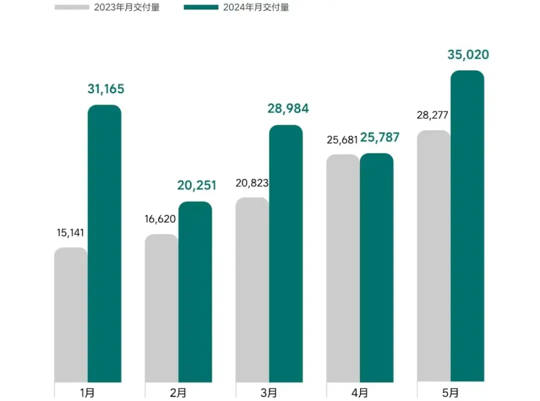 理想汽車5月交付新車35020輛,同比增長23.8%,且環(huán)比增長也超過35.8%,意外的是,理想官方竟沒有提及。
