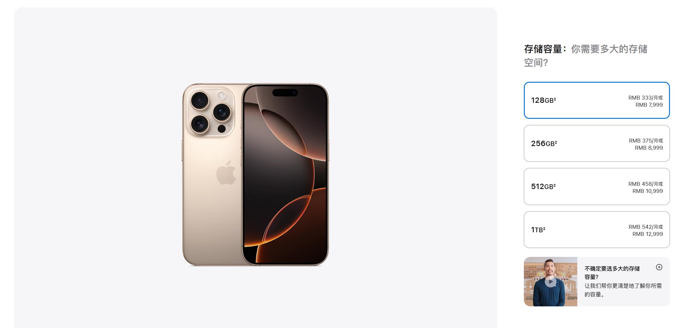 2. 存儲定價策略“割韭菜”:256GB版本售價與15 Pro持平,但1TB版本溢價高達3000元,性價比極低。