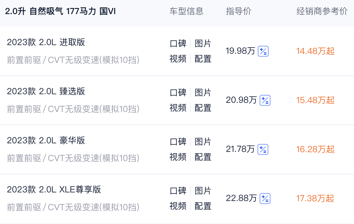 于是豐田也“低下了高傲的頭顱”,在終端啟動了降價,我們從汽車門戶網(wǎng)站得到的報價數(shù)據(jù)顯示,這款售價19.98-27.98萬元的中型轎車產品,目前有超過5萬元的終端優(yōu)惠,起售價來到了14.5萬左右,當然這是國內最低報價,不代表所有門店都有這樣的優(yōu)惠幅度,希望大家知曉。對于一款4.99米,已經(jīng)夠得上中大型轎車尺寸的合資中型車產品來說,這樣的價格可以說很“卑微”了。