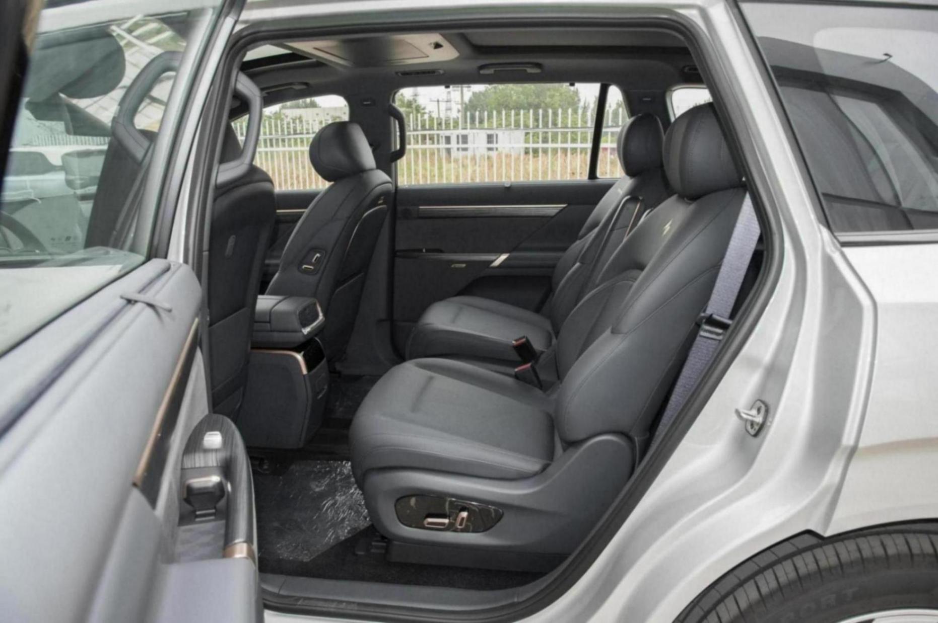 eπ008的定位是中大型SUV,其軸距做到了3025mm,比同級(jí)的理想L7(軸距3005mm)還要大,優(yōu)渥的尺寸基礎(chǔ)使得eπ008在采用2+2+2的6座布局情況下,第三排依然有足夠的舒展空間,成人入座也不至于太拘謹(jǐn)。特別的是,中央通道上的冷暖兩用冰箱(5/50℃)可通過(guò)電動(dòng)滑軌在1-3排之間靈活移動(dòng),既方便乘客拿取又提升了空間利用效率。
