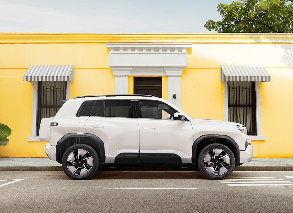 這個版本的車身側面整體造型和第一種版本基本一致,下包圍是大面積的黑色和銀色護板裝飾。整個側面寬厚的D柱以及突出的前后翼子板設計有著很高的辨識度。