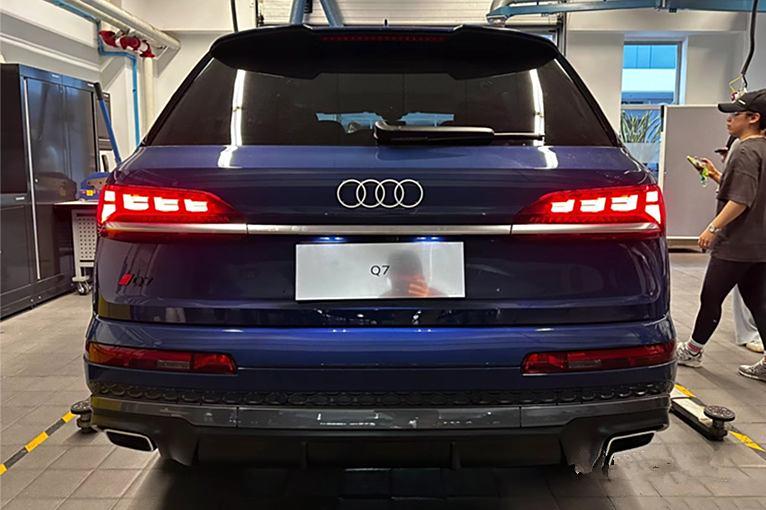 在車的尾部,新款奧迪Q7繼續(xù)采用層次分明的設(shè)計,新車采用的是前傾效果的后擋風,展現(xiàn)出了它運動化的一面。車的尾燈采用非常粗獷的設(shè)計,尾燈的下方有貫穿式的鍍鉻條點綴,中間的位置采用內(nèi)凹式的輪廓,車的底部是突出的包圍。