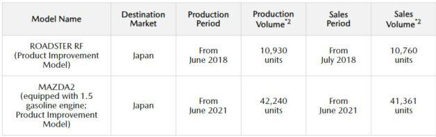 而Mazda 2和MX-5的引擎測試造假行為則是在這兩款車型搭載的1.5L汽油引擎所進行的測試,原廠的職員涉嫌使用與市售版本不一樣的引擎控制軟體,讓相關車輛在進行引擎測試時出現不一樣的引擎動力與排放表現,涉案的Mazda 2共有52,121輛,而MX-5則有53,170輛。