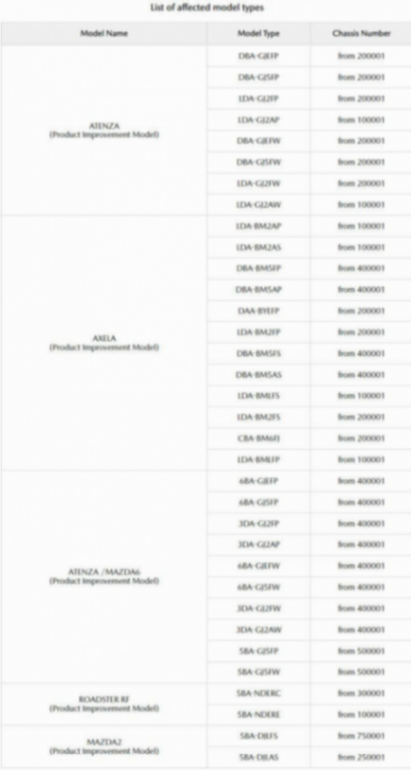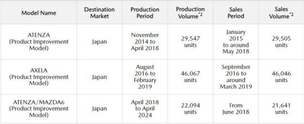 根據報告,涉及測試造假與違規行為的是日本當地市場銷售的Mazda 2、Mazda 3(當地稱為Axela)、Mazda 6(當地稱為Atenza)和MX-5(當地稱為Miata),這些車款全在日本本土生產,并只在當地銷售,目前已鑒定涉案的車款產量高達150,878輛,當中有149,313輛已經售出。