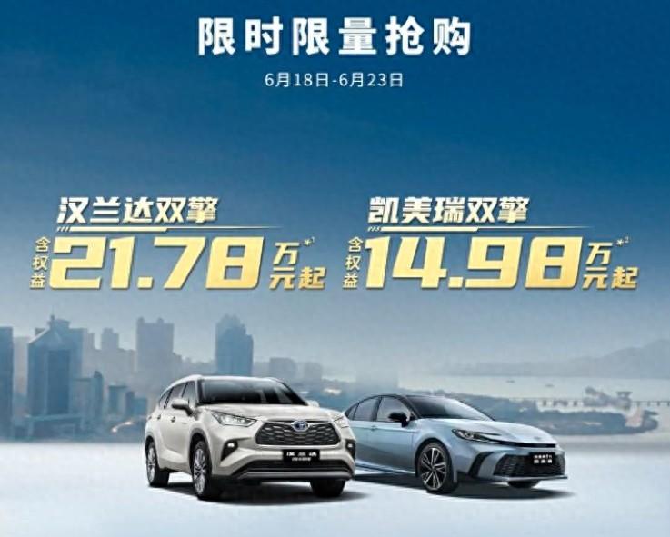 正值6.18大促,廣汽豐田也積極參與其中,針對旗下漢蘭達(dá)雙擎和凱美瑞雙擎推出限時促銷活動,活動時間僅限6.18-6.23,限時6日。漢蘭達(dá)針對的是2023款雙擎版車型,含優(yōu)惠40000元和置換補(bǔ)貼11000元,優(yōu)惠后最低21.78萬起。凱美瑞雙擎限時優(yōu)惠25000元,還可享置換補(bǔ)貼5000元,優(yōu)惠后最低僅售14.98萬起。