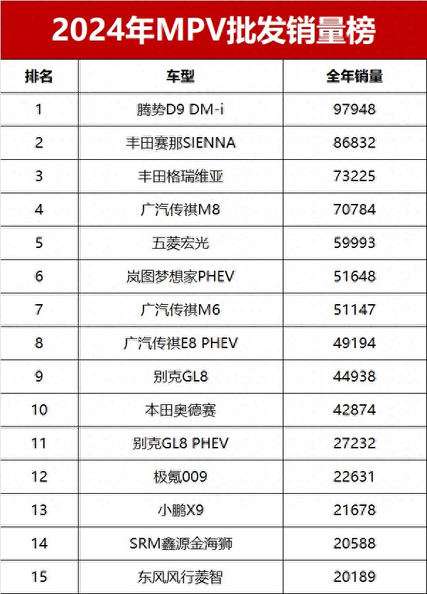 2024全年MPV批發銷量揭曉!新能源崛起,燃油車“冰火兩重天”