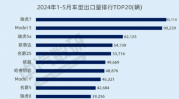 作為最早開辟出口市場的自主品牌,奇瑞依然占據先發優勢,1-5月出口34.48萬輛,而品牌旗下的瑞虎7、瑞虎5X、歐萌達以及瑞虎8,也都進入了出口車型銷量榜的前十。