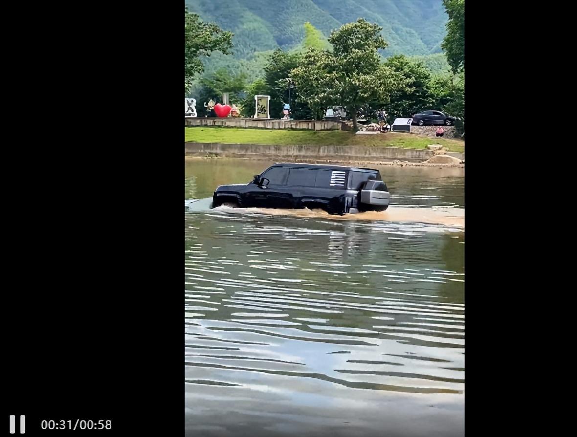 這還不止,近日,網絡流傳視頻顯示,仰望U8疑似故意駛入湍急河中。車輛倒車入水后橫置,迅速被水流沖走約十米,最終車輪觸底停止漂移,并在水中掉頭。車輛最終被拖上岸,無人員傷亡。此外更讓人震驚的是,還有一位女車主,帶著家人乘坐仰望U8,在平靜水面展示應急浮水功能。