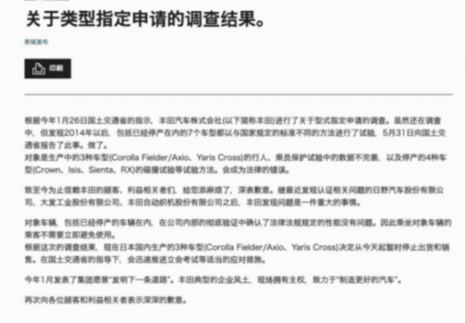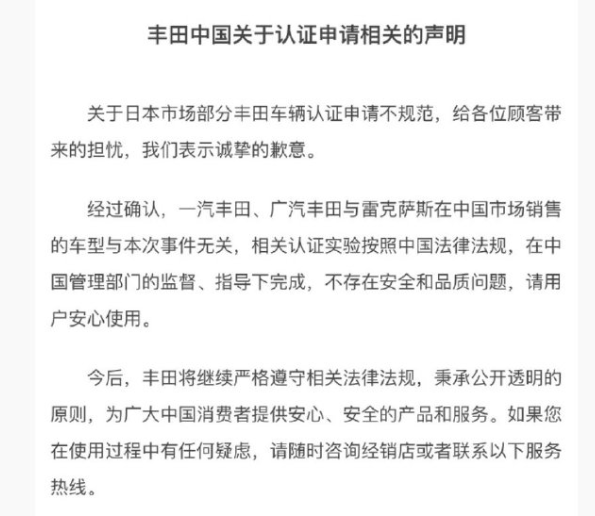 當然,讓人欣慰的是,豐田中國第一時間發布了聲明,撇清了中國市場在售車型與這件舞弊事件的關系。