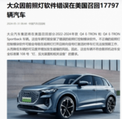 如此,則會降低車輛的可見度,并增加涉事車輛發生碰撞的風險。有鑒于此,大眾集團決定在美國市場召回這些車型。