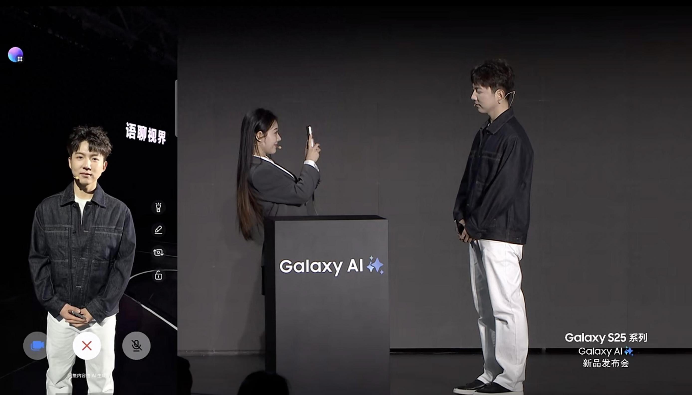 三星發(fā)布會上演示S25系列手機的AI視頻通話功能。