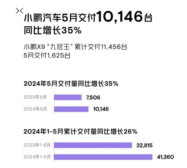 從產品層面來看,小鵬最新車型X9在5月份交付了1625輛新車,相比4月份1959輛新車的交付量數據,整體也是有一定下滑的。不過,小鵬汽車在5月20日向用戶推送了AI天璣系統,并行業首發了量產的“端到端”大模型,全球首發AI代駕。