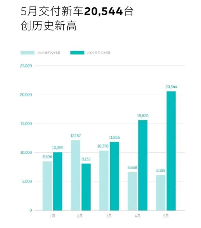 最后是在“蔚小理”這三家中排名最靠后的小鵬汽車。5月份,小鵬汽車共交付新車10146臺,銷量不及理想汽車的三分之一,相比蔚來也是差了一倍有余。不過好在的是,從自身內部發展來看,小鵬汽車5月銷量還是同比了增長35%,環比增長也有8%,所以眼下“活下去”的問題應該是不大。
