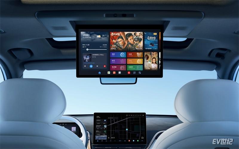 eπ008搭載15.6英寸智能后排娛樂屏,可實現無線投屏、一鍵飛屏等貼心功能,配合全車20個揚聲器和7.1.2聲道WANOS全景聲環繞音效,隨時隨地,搖身一變“家庭影院”。