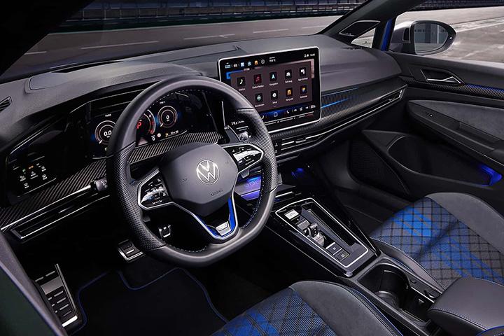 內(nèi)飾方面,新款高爾夫R采用了大眾最新的數(shù)字化座艙設(shè)計(jì),配備了10.2英寸全液晶儀表盤和12.9英寸懸浮式中控屏,營造出強(qiáng)烈的科技感。除了包裹性十足的一體式運(yùn)動(dòng)座椅之外,新車還采用了大量的軟質(zhì)材料和皮質(zhì)包裹,使車內(nèi)空間更加舒適、豪華。
