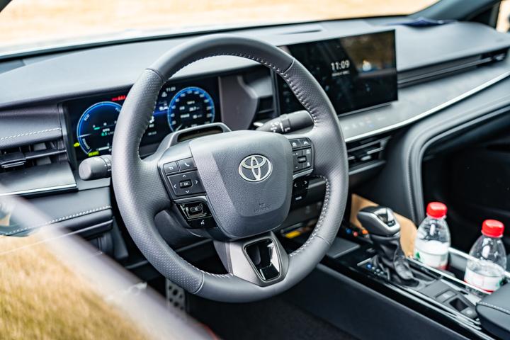 內飾部分其實在此前的試駕當中已經給大家介紹過了,全新第九代凱美瑞并沒有直接沿用海外版車型的設計,而是通過更加扁平化的中控臺布局、觸控式的交互按鍵以及懸浮式液晶屏幕讓整個座艙更顯科技感。