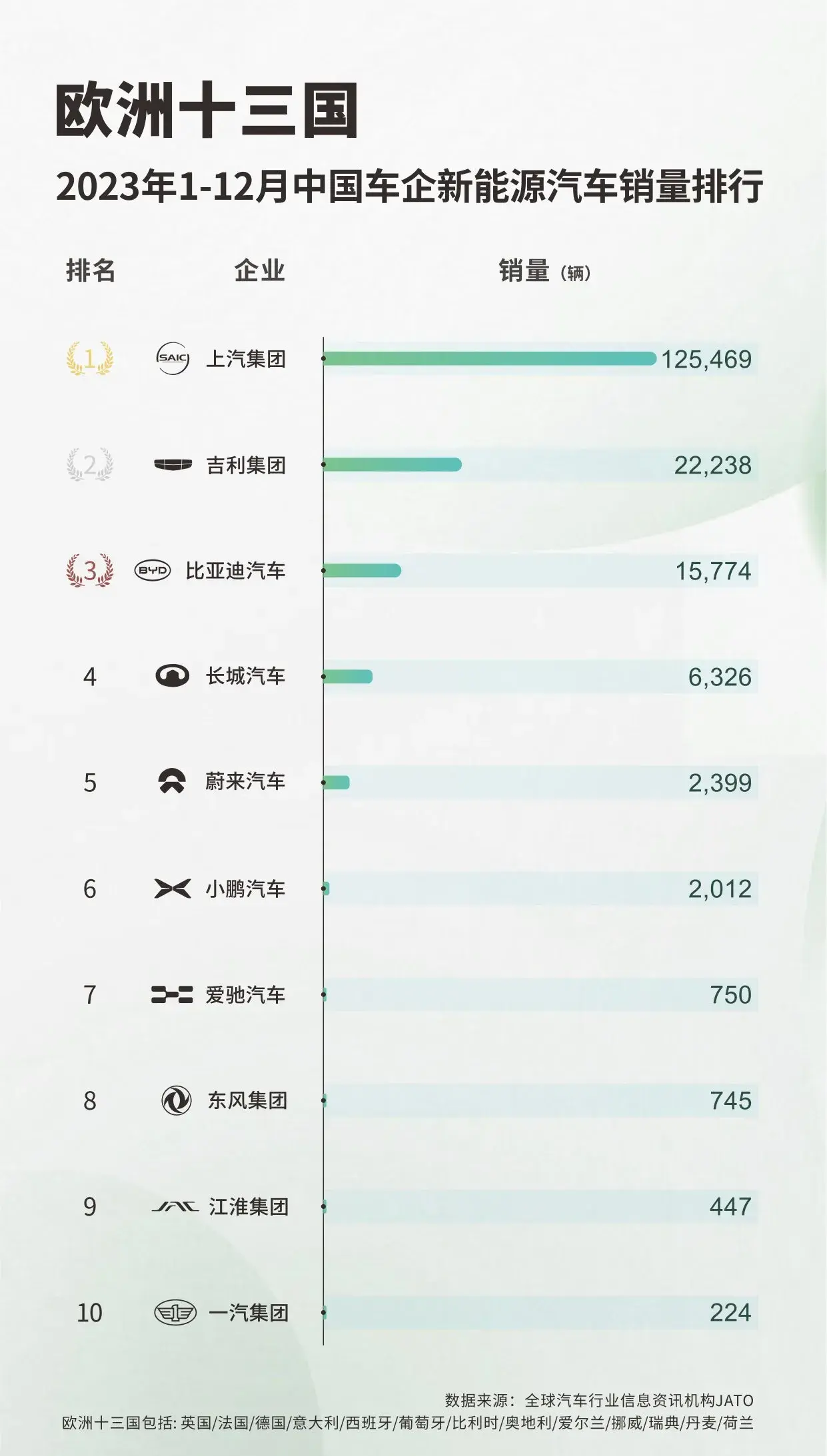 上汽集團在歐洲賣得究竟有多火呢?僅2023年一年,上汽在歐洲十三國的新能源汽車銷量,就已超過了12.5萬輛,比其他國內車企出口歐洲的總和還要多。