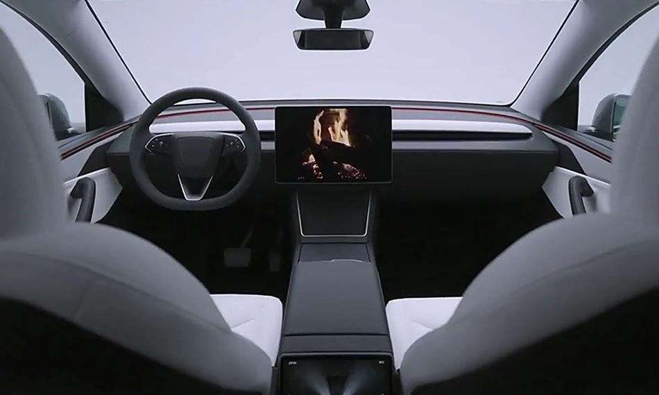 整個T字區使用了煥新造型,相比老款車型更有環抱式感覺,方向盤也是全新造型。依舊是簡約風格,所有車機及駕駛相關數據都集成在了15.4英寸大屏之中。
