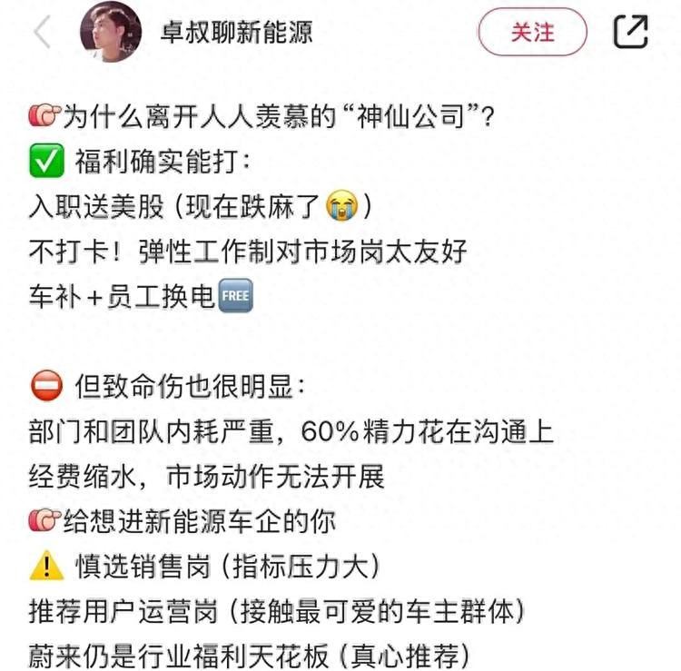 部門和團(tuán)隊(duì)內(nèi)耗嚴(yán)重,60%的精力花在溝通上,經(jīng)費(fèi)縮水,市場動(dòng)作無法開展。”在小紅書一篇題為“為什么離開人人羨慕的‘神仙公司’?”的筆記中,某離職蔚來汽車的員工給出了這樣的離職理由。