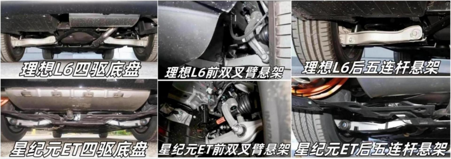 底盤懸掛,兩車都是前雙叉臂、后多連桿配可變阻尼減震器,但調(diào)校迥異。理想L6懸掛偏軟,舒適但激烈駕駛時支撐性欠佳;星紀(jì)元ET懸掛韌性足,過彎姿態(tài)好,底盤還大量用鋁合金材料,更顯誠意。