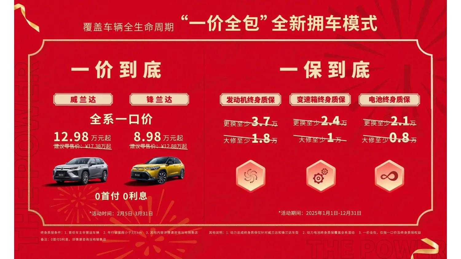 ? 一保到底:一口價車型威蘭達和鋒蘭達,享發動機、變速箱、雙擎混動電池 終身質保,一口價+終身質保,這才是真省心!
