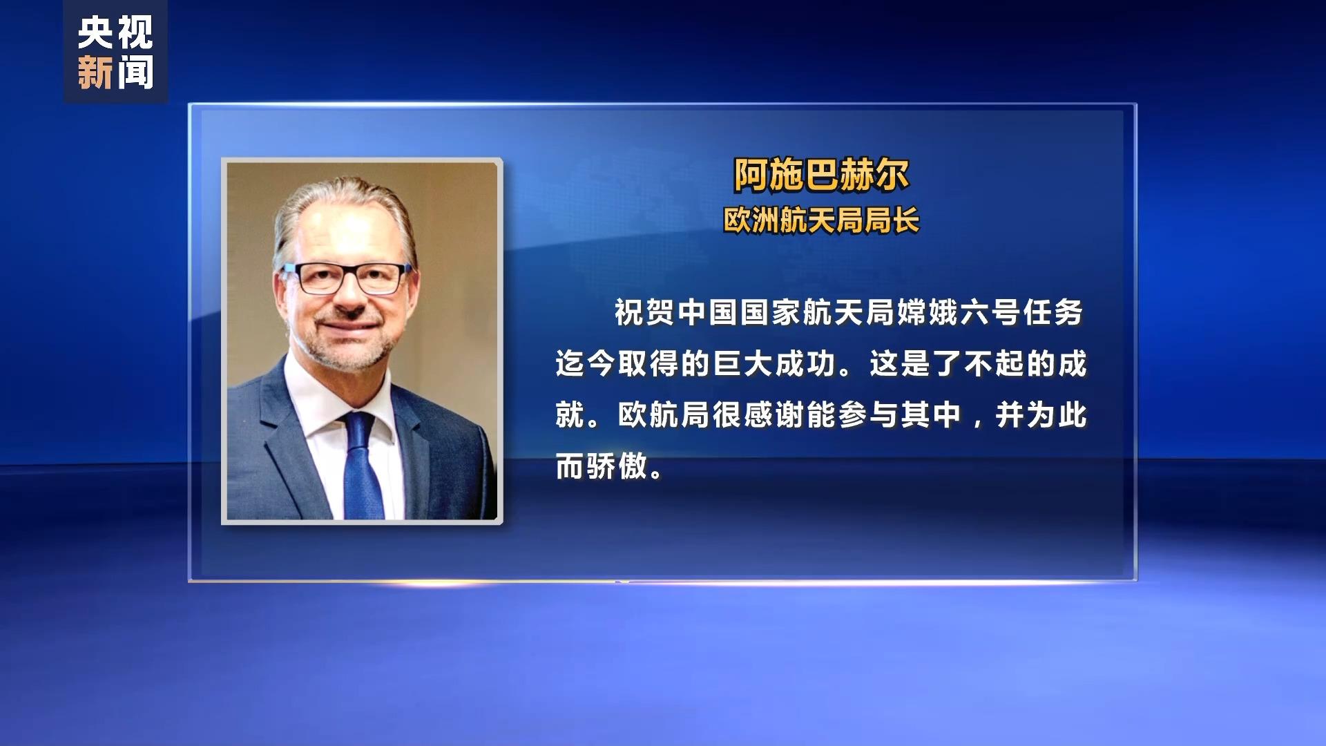 根據(jù)最新消息,6月4日7時38分,嫦娥六號上升器攜帶月球樣品自月球背面起飛,隨后成功進(jìn)入預(yù)定環(huán)月軌道,完成世界首次月球背面采樣和起飛,對此,世界各國航空領(lǐng)域?qū)<液兔襟w紛紛表示祝賀,歐洲航天局局長阿施巴赫爾表示:“祝賀中國國家航天局嫦娥六號任務(wù)迄今取得的巨大成功。這是了不起的成就。歐航局很感謝能參與其中,并為此而驕傲。”