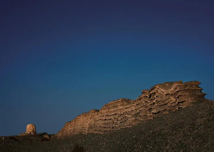 “明月出天山,蒼茫云海間。長風幾萬里,吹度玉門關。”這幅詩仙李白描繪的中國西北大地上的壯闊景象,攝影家董旭明先生曾不止一次地驅車前往,長途跋涉,深入腹地,甚至不懼在大漠的風沙霜雪中只身歷險,用相機攝下中國長城在那里屹立兩千多年的一座座關址烽燧。