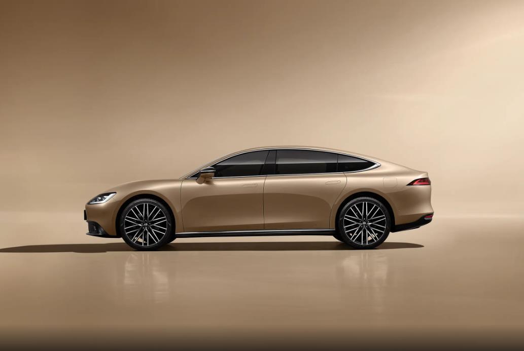 而這款車的側(cè)面,也沒有多余的線條和凹凸,整體就是一種順滑的感覺,而且輪轂尺寸也很大,配上隱藏式門把手和無框車門設(shè)計(jì),看上去很持重。尾部設(shè)計(jì)則非常簡潔,貫穿式尾燈造型也沒有特別多值得一說的,但是整體看起來,還是符合這個(gè)尺寸段位該有的穩(wěn)重感。