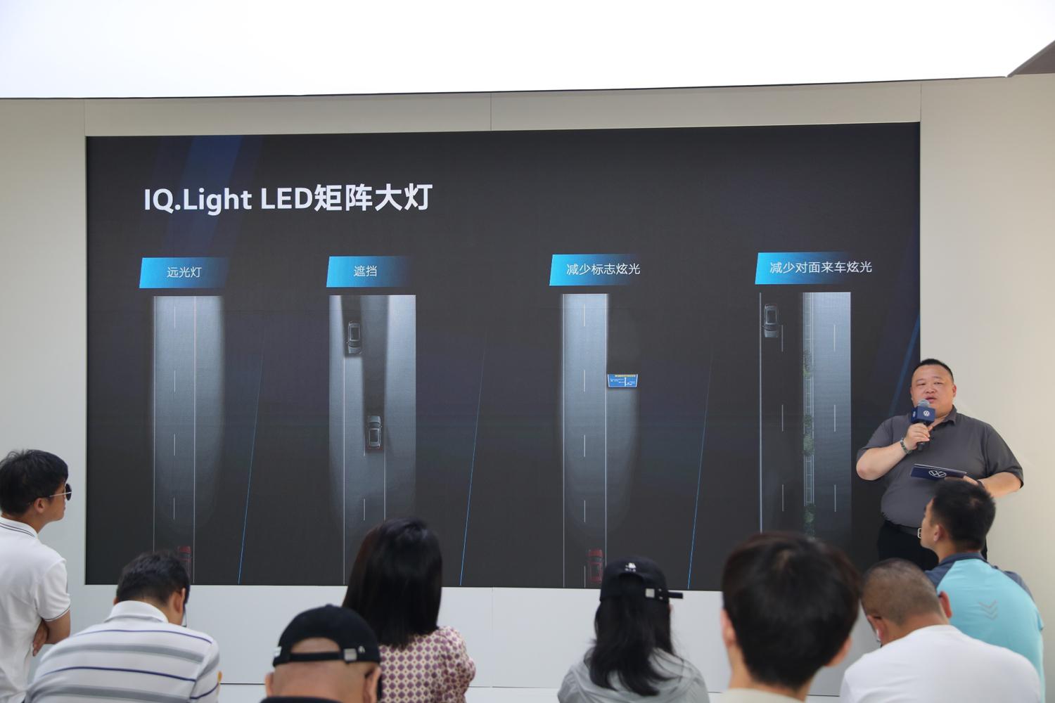 這次科技體驗日,咱們先來聊聊大眾的大眾的IQ.Light LED矩陣大燈。這個燈組所包含的功能很有意思。首先從基礎硬件來看,這套燈組在業內依然是配置比較高的方案,例如近光燈,擁有25600顆發光單元,可別小看這個數字,現在很多品牌所謂的智能大燈,其實也就幾千甚至一萬多顆發光單元而已,只不過咱們消費者不知道罷了。