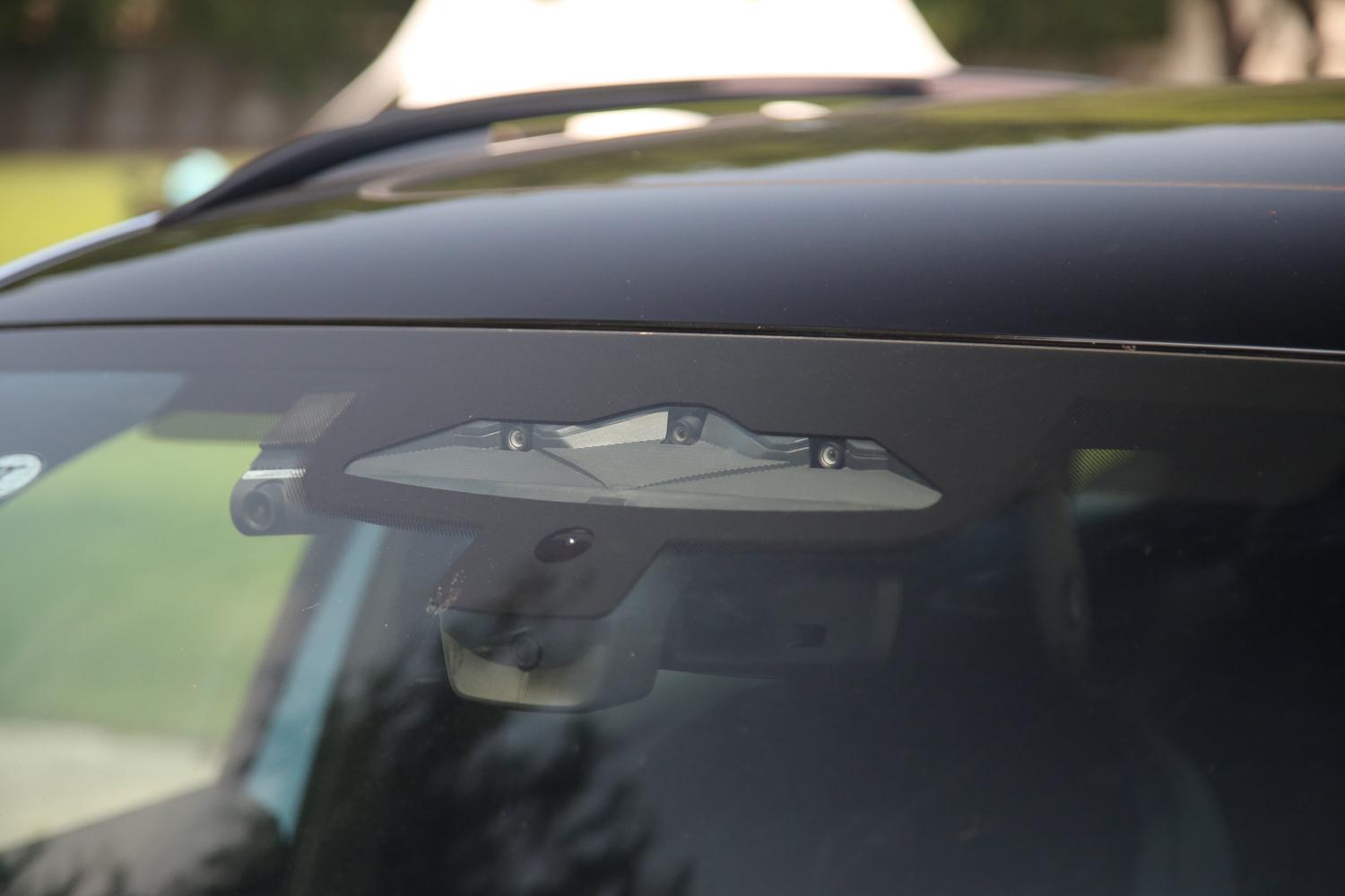 接下來咱們再來聊聊大眾最新的IQ.Pilot 智能駕駛輔助系統,這套系統在兩款車上首先進行了硬件方面的大幅升級,除了擁有12顆超聲波雷達意外,還新增了前部兩個角毫米波雷達,總計5個毫米波雷達,此外,這套系統還應用了大疆的車載慣導雙目攝像頭。從車輛前風擋玻璃就可以看到總計4顆攝像頭,別說同級競品了,甚至在同級豪華品牌產品中都算多的。