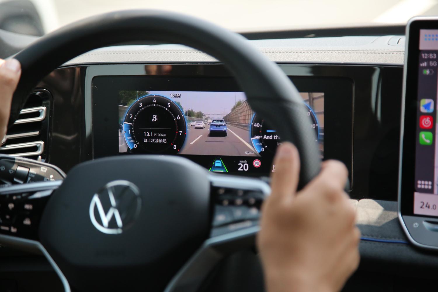 本次我們特意體驗了下IQ.Pilot 智能駕駛輔助系統的實際道路體驗,在高速上,車輛的ACC跟車距離、車道保持順暢度等依然保持著大眾的高水準,非常絲滑,這也是合資品牌的優勢,必須優化好才能搭載在產品上。此外,這套系統還支持駛入和駛出匝道,它能夠識別75米曲率的彎道,而且在匝道內,會偏向彎心一側行駛,更符合大部分駕駛者的習慣,有了自動駛出匝道,有了ACC和車道保持,就足以滿足高階輔助駕駛的需求了。