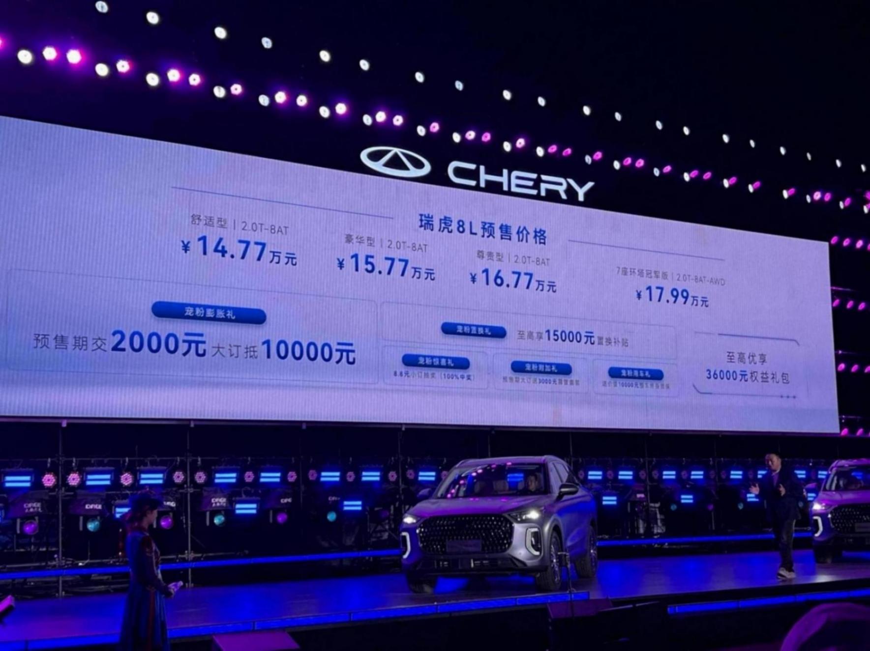 7月17日,奇瑞瑞虎8L正式開啟預售,預售價格區間為14.77-17.99萬元,預售期間交2000元大訂抵1萬元,至高享1.5萬元置換補貼,至高優享3.6萬元權益禮包。瑞虎8L定位于中型SUV,提供5座和7座車型選擇,新車將于8月8日正式上市。