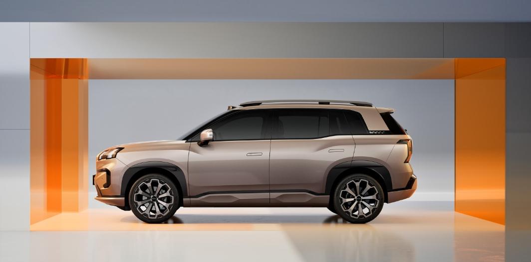 外觀方面,第二代AION V采用了全新的設計語言,整體造型以“霸王龍”為設計靈感。前臉部分,一體式的前大燈組內部融入了類似于龍爪的元素,配合上機艙蓋隆起的筋線,以及下方導風口處的熏黑裝飾,看上去十分兇悍。