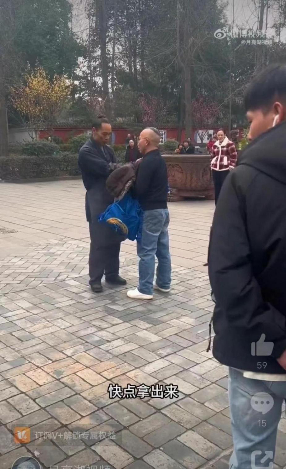 2月15號,成都青羊宮,一名游客拿了游客扔在許愿池里的錢,被道長抓住,游客歸還了道長還不依不饒。