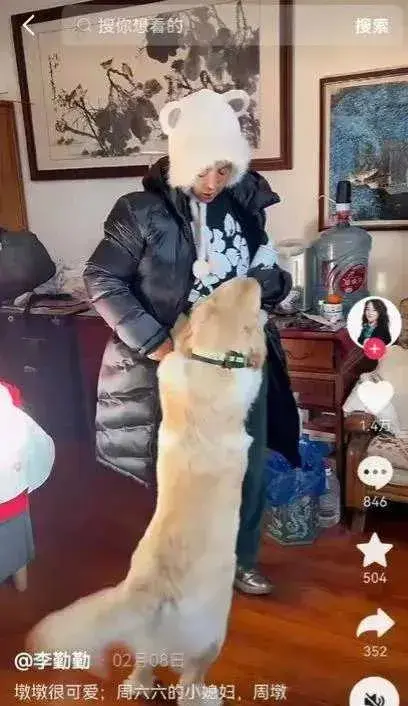 不久前,李勤勤在社交媒體上曬出了與周海媚愛犬的親密相處日常,引發了廣大網友的關注。視頻中,李勤勤戴著墨鏡,一身休閑裝扮,蹲在地上與小狗玩耍。小狗調皮搗蛋的模樣,令人忍俊不禁。