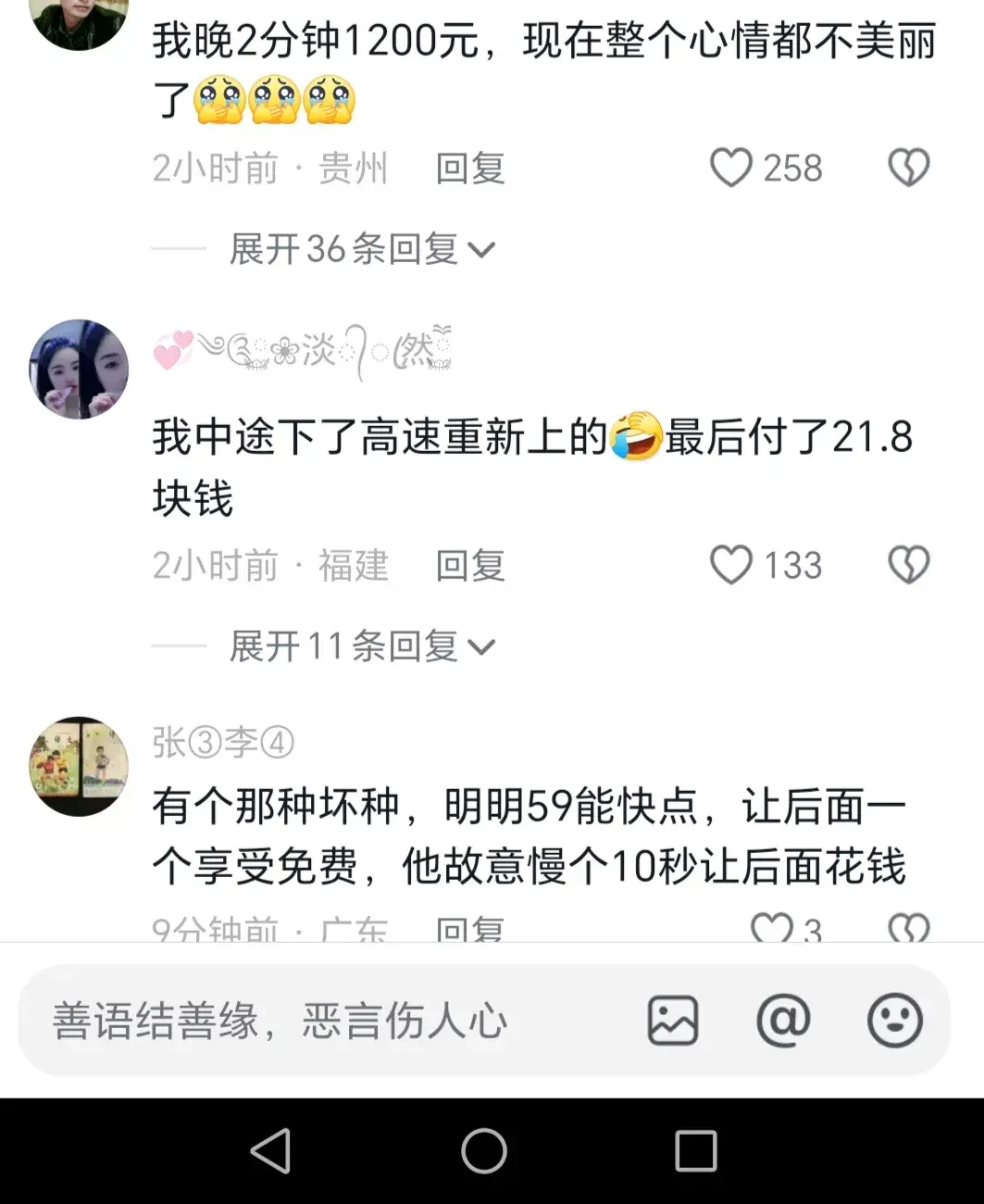 因此,評論區也有網友建議:時間來不及了,提前一個路口下高速,然后再重新上高速,這樣就只要交后面重新上高速的費用了,也可以省下不少錢。