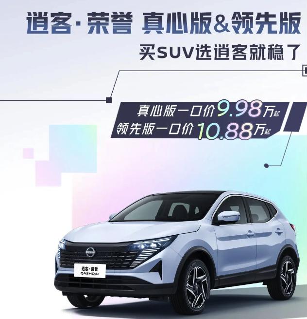 逍客·榮譽真心版:9.98萬元起,領先版10.88萬元;