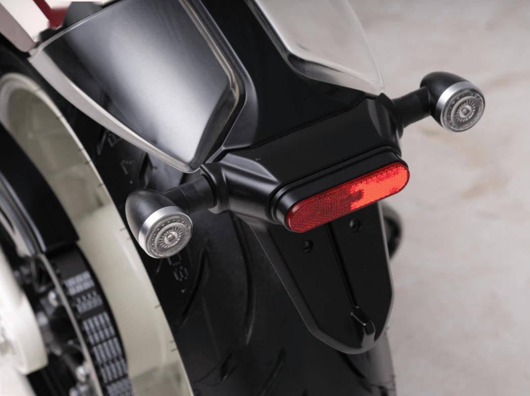 直連式軟尾結構引入,通過隱藏式中置減震與車架直連,外觀更一體干凈,操控也得到了一定的提升,排氣管緊貼車輪,尾部線條舒展凌厲。