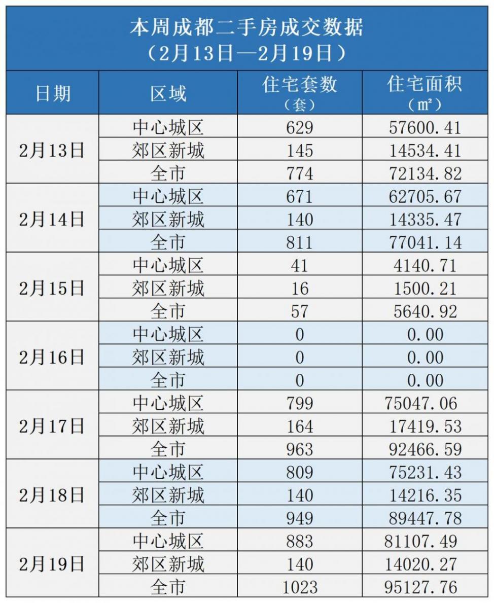 本周(2月13日—2月19日),成都二手房成交4577套,較上周下降約2.35%,成交總面積431859.01㎡。