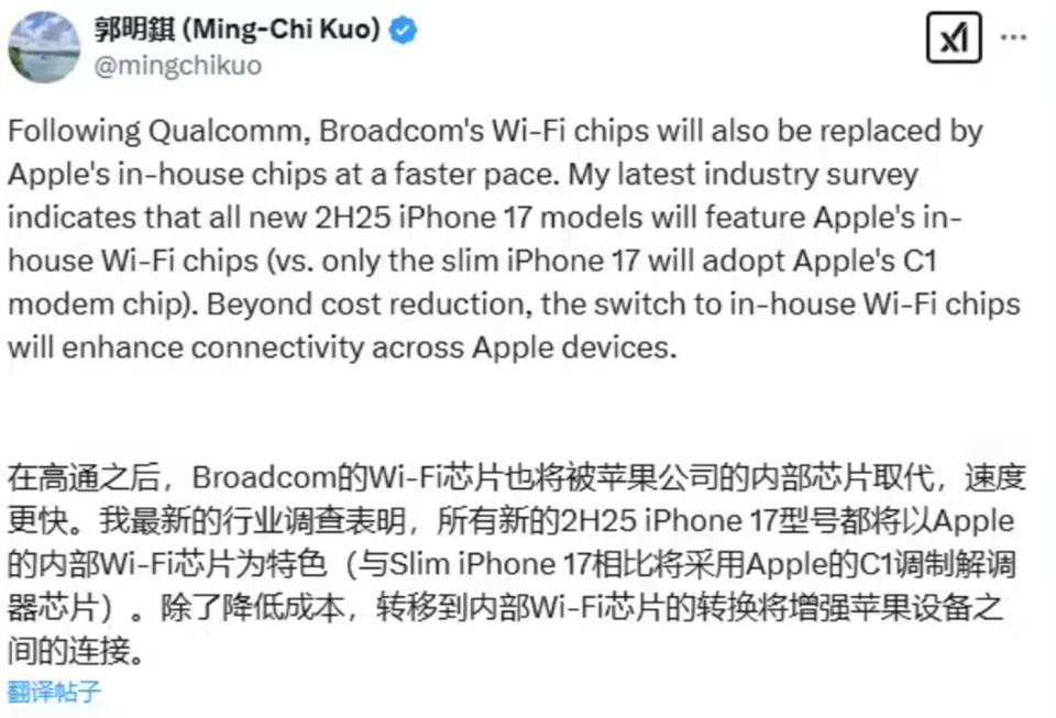 需要了解,博通作為蘋果Wi-Fi芯片的主要供應商,其產(chǎn)品覆蓋從iPhone 12到iPhone 16的全系列機型。