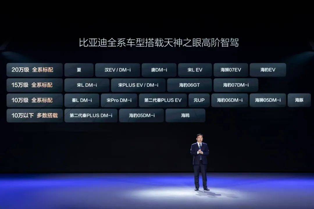 2月10日,比亞迪繼續(xù)開打全系智駕,一口氣拿出21款、價格直探7萬的智駕車型,上至仰望U8、下至比亞迪海鷗,統(tǒng)統(tǒng)都有配備高階智駕。更重要的是,加“智”不加價。比亞迪董事長王傳福在發(fā)布會上更是放出豪言,要讓高階智駕成為“出廠自帶功能”。