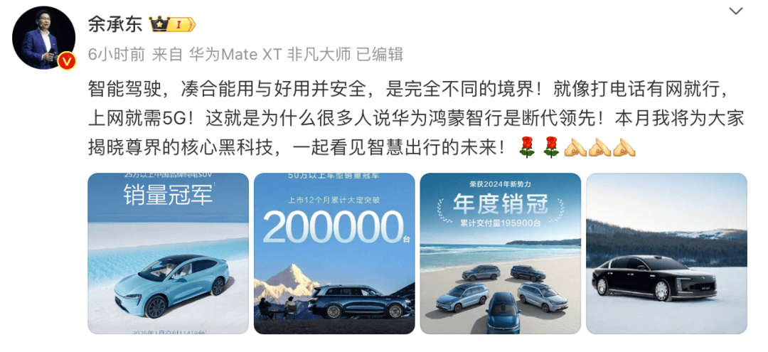 值得一提的是,對于這波全民智駕的浪潮,業(yè)內也有不同的聲音。比如余承東就在朋友圈表示,普及基礎駕駛輔助值得表揚,但混淆高階智駕概念不合適。