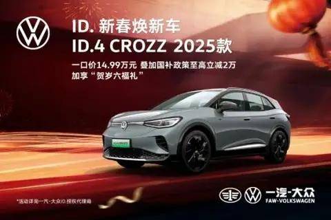 對于追求性價比的消費者,一汽-大眾于1月份先后推出了ID.4 CROZZ 2025款和眾享款280TSI豪華型的“一口價”新車,以及春節限時特惠活動,通過豐富的配置和親民的價格,滿足消費者對實用性與經濟性的追求;對于追求品質與科技感的消費者,一汽-大眾則全力提供搭載先進前沿技術、內飾設計精致考究的高端車型,充分滿足他們對高品質生活的向往。